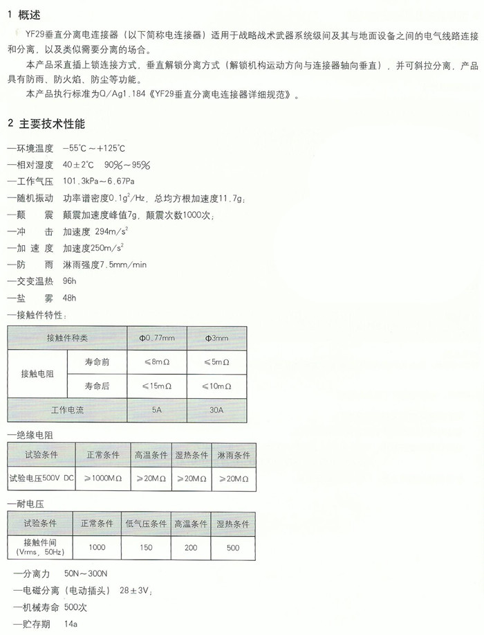 YF29垂直分离电连接器