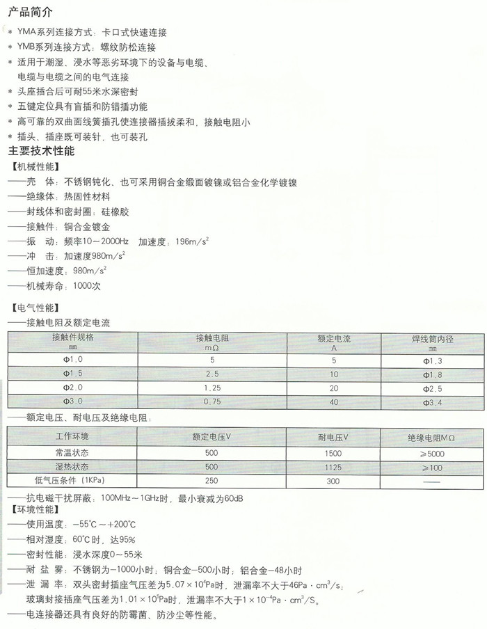 > YMA、YMB系列耐腐蚀防水圆形电连接器