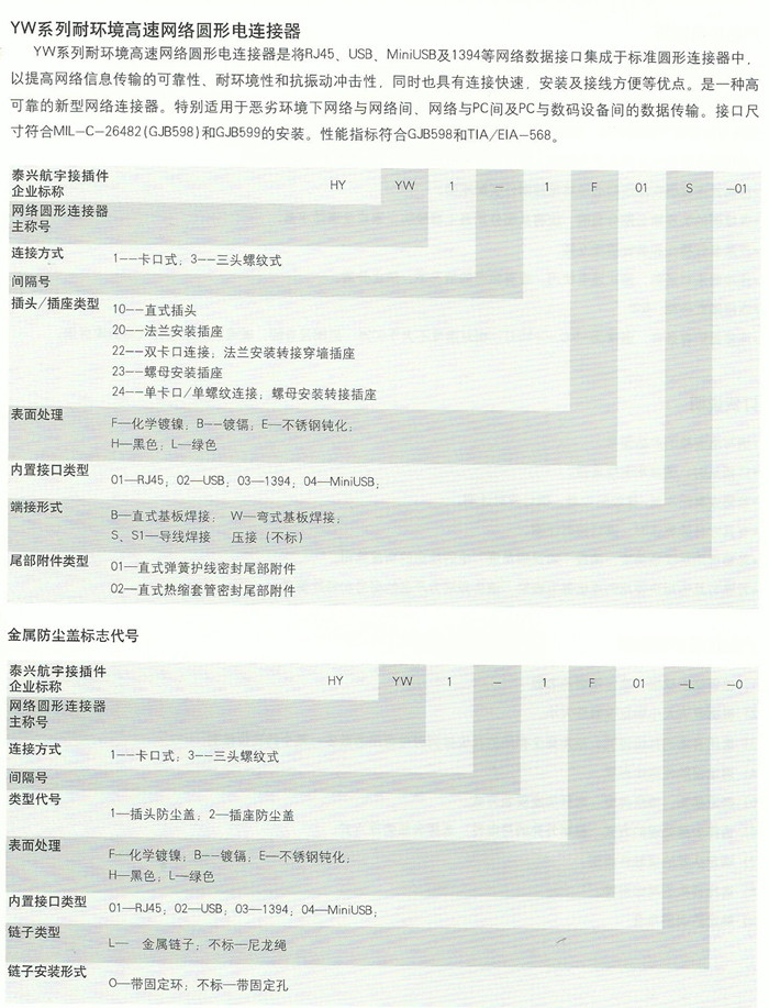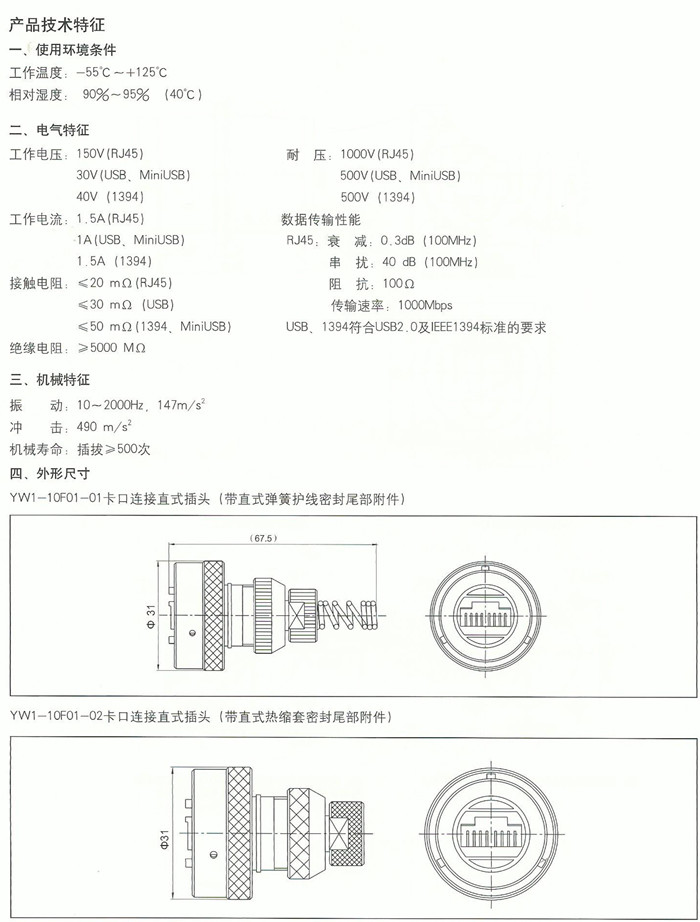 > YW系列耐环境高速网络圆形电连接器