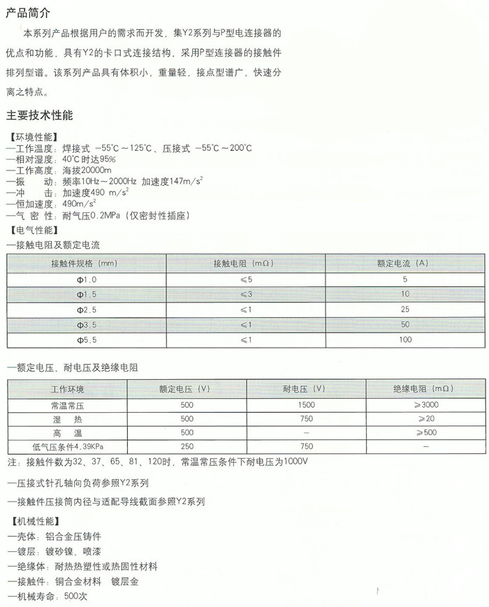 Y2系列圆形电连接器
