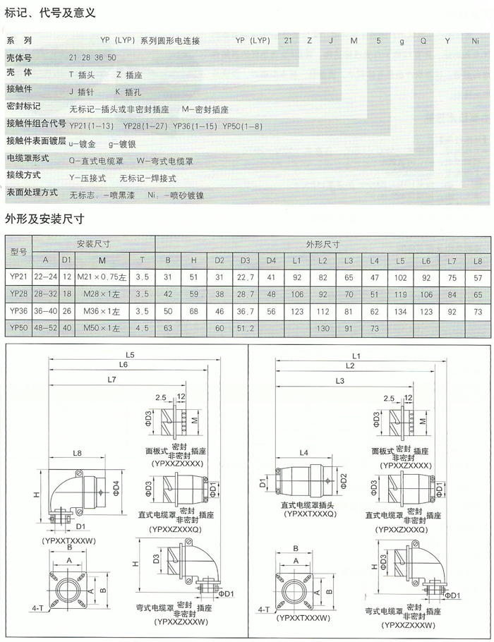 > YP系列圆形电连接器