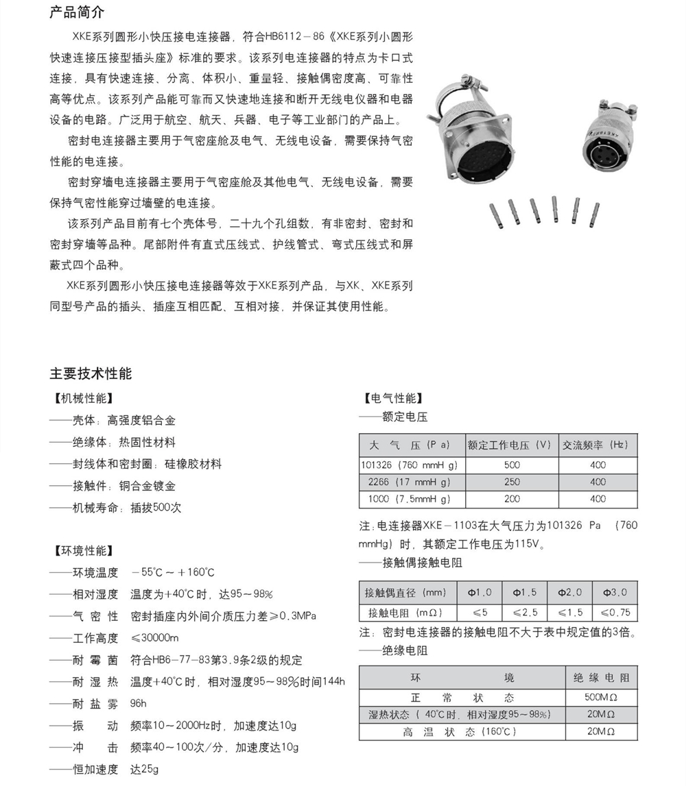 > XKE系列圆形小快压接电连接器